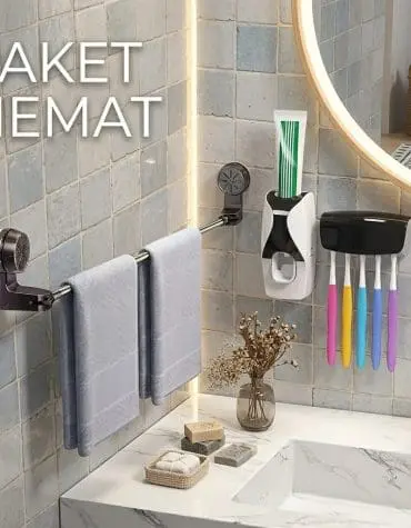 Paket Hemat Rak Handuk kamar mandi dengan perekat hisap tanpa pengeboran, panjang bisa disesuaikan, 30 – 60 Cm + Dispenser Odol