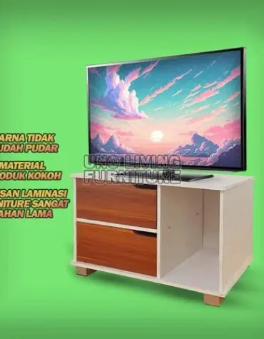 Meja tv Serbaguna 80,papan, perlu dirakit, 2 laci Scandinavian