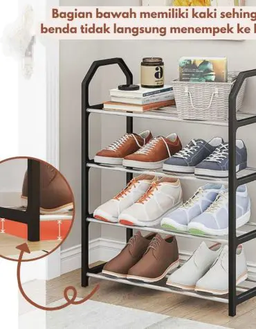 Rak Sepatu dan Sendal Bass Rak Besi Tiang Plastik 4 Tingkat