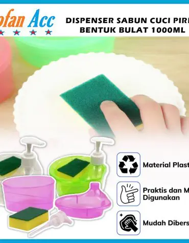 Tempat Sabun Cair Cuci Piring Pump Plastik Model Bulat + Spoon