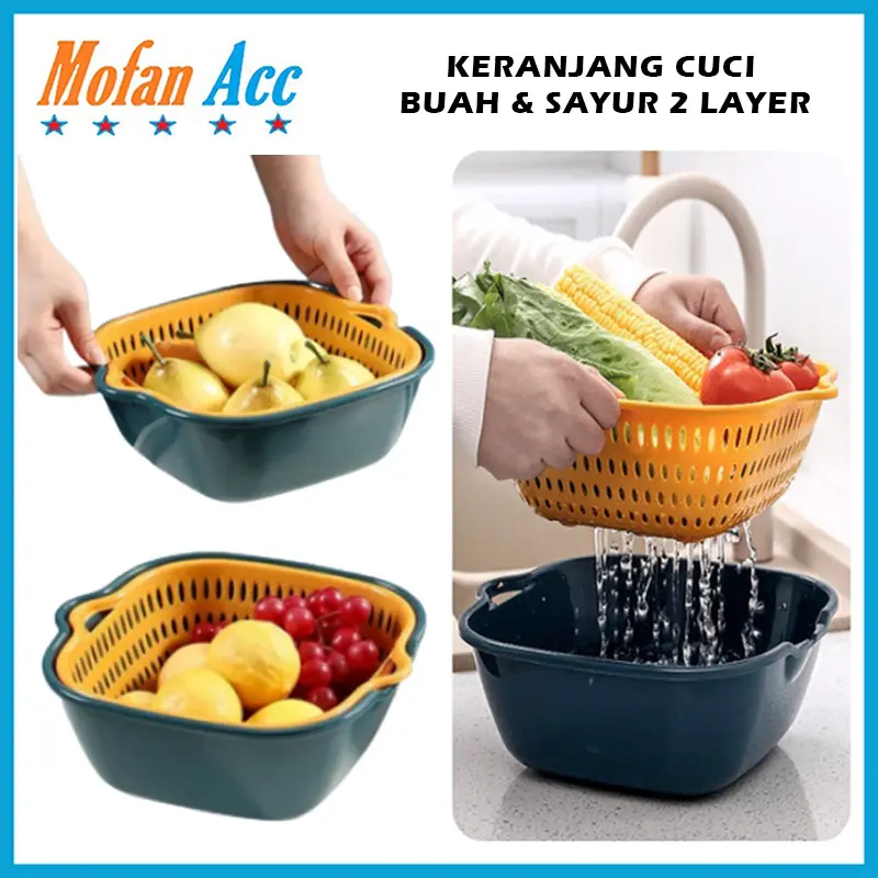 Wadah Cuci Saringan Peniris Sayur dan Buah Serbaguna Kit 2 Lapis Size Medium