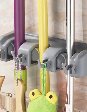 Gantungan Sapu dan Alat Pel Tempel Dengan 3 Slot Hook + Kait