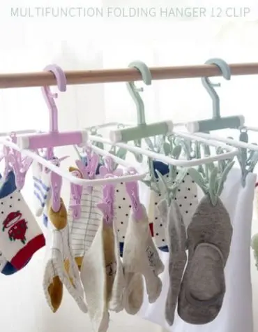 Jemuran Gantung Lipat Jepit Kaos Kaki dan Pakaian Dalam Dengan 12 Anak Jepitan Berputar 360 Derajat