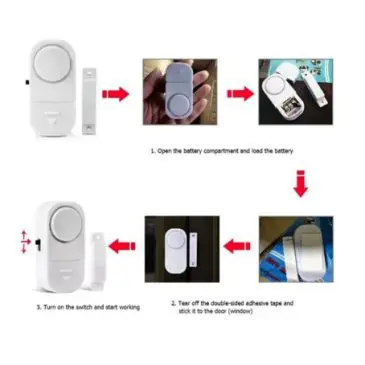 1. Tempelkan alarm anti maling di daun pintu / jendela dengan menggunakan super double tape yang sudah ada.