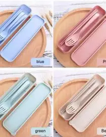 Set alat makan portable jerami terbuat dari bahan plastik jerami tebal yang tahan panas bisa awet banget dan di pakai berkali-kali .Cocok dibawa pergi / travelling karena ukurannya tidak terlalu besar dan gampang disimpan. Set alat makan ini sangat cocok digunakan sebagai sarana untuk menghindari resiko penyakit menular melalui makanan. Makan dimana aja aman, bersih dan bebas dari terkena penyakit menular.