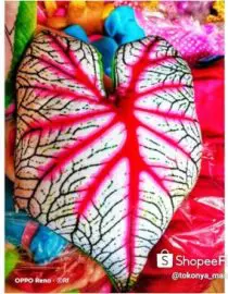 Deskripsi produk bantal motif daun keladi atau caladium unik dan lucu terutama untuk kalangan yang hobby tanaman hias wajib punya loh… spesifikasi : bahan kain velboa print serta