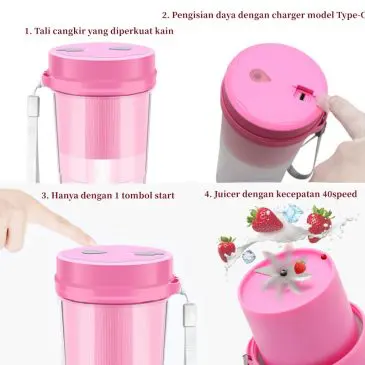 Blender Jus Mini Portable Hangyan 4 Mata Pisau 350ml + USB