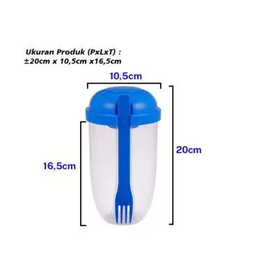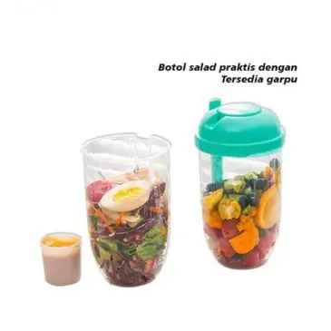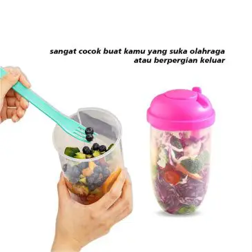 Botol salad praktis dengan sendok garpu, penutup portable dan dilengkapi dengan tempat kecil terpisah untuk saus salad. Botol buah salad ini sangat cocok buat kamu yang suka olahraga atau berpergian keluar. Apalagi cup ini sudah menggunakan bahan polypropylene yang ramah lingkungan, dapat digunakan dengan aman dan terhindar dari penyakit serta dapat dicuci dengan mudah, seperti baru lagi.