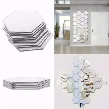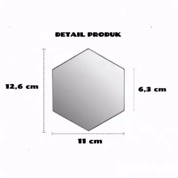 Deskripsi produk CERMIN KACA HEXAGONAL HIASAN DINDING Hias ruangan dengan kaca cantik berbentuk segi enam/hexagon yang membuat ruangan tampak lebih luas, unik dan elegen. sHarga di atas untuk isi : 1 pcs sticker kaca hexagon ukuran 12,6 cm x 11 cm x 6,3 cm ketebalan +/- 1,5mm Warna : Silver Bahan : Akrilik + kaca Untuk pemasangan lansgung tempel pada dinding saja, sudah ada perekat di belakang.