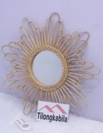 Deskripsi produk Cermin diameter 20 cm, diameter keseluruhan 50-60 cm tergantung model Bahan rotan alami untuk model bunga warna, bunga matahari & semua yg ada warnanya, bahan sintetis