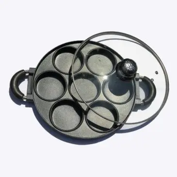 Cetakan Kue Cetakan Martabak Dorayaki Takoyaki 7 Lubang Datar Dia. 28cm Dengan Tutup Kaca