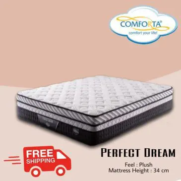 Kasur dengan latex pillow top yang akan membuat tidur kita lebih nyaman dan tubuh kita tertopang dengan sempurna oleh teknologi Couple ComfortTM dan Foam Encased.