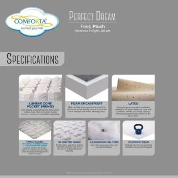 Kasur dengan latex pillow top yang akan membuat tidur kita lebih nyaman dan tubuh kita tertopang dengan sempurna oleh teknologi Couple ComfortTM dan Foam Encased.