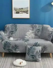 Cover Sarung Penutup Sofa Motif Daun Abu-abu Uk. 1 Seater 90-140cm