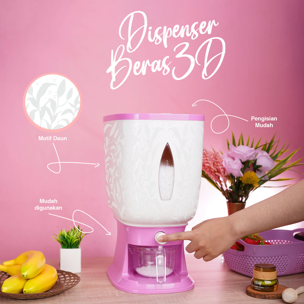 Dispenser untuk penyimpanan bahan kering seperti beras, biji-bijian, ataupun makanan hewan. Tertutup rapat agar terhindar dari kontaminasi kutu, serangga, debu dsb.