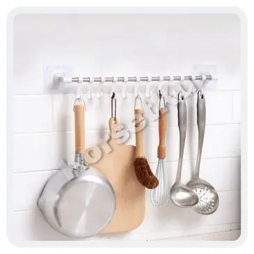 Gantungan Alat Dapur 8 Hook Kait Bahan Plastik dan Stainless Steel Cantolan Tempel Tanpa Bor