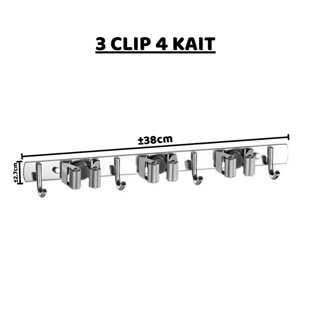 Gantungan Sapu pel Stainless 3 clip 4 kait