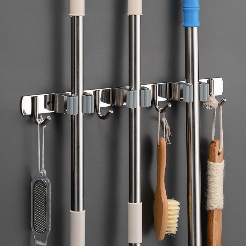 Gantungan sapu pel adalah gantungan untuk penyimpanan dan penataan sapu, alat pel, dan alat kebersihan lainnya. Terbuat dari bahan stainless steel berkualitas tinggi. Bola putar yang unik ini memegang dengan kencang sesuai ketebalan gagang sapu. Bantalannya terbuat dari karet anti slip sehingga gagang sapu tidak bergeser. Di desain dengan kokoh untuk digantung di dinding rumah. Tersedia skrup dan lem perekat agar mudah dan cepat dalam pemasangan. Cocok digunakan untuk jadi tempat penyimpanan di dapur, tempat cuci, basement atau garasi.