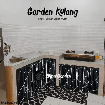 Gorden Penutup Kolong Meja Dapur Black Abstrak 100x70cm