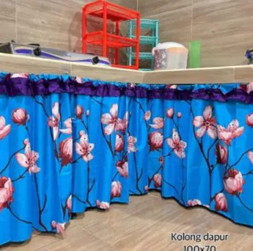 Gorden Penutup Kolong Meja Dapur Sakura Biru 100x70cm