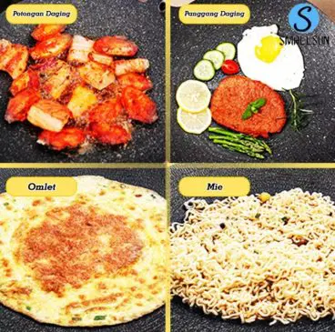 Dengan alat Panggang multiguna grill pan ini acara bakar bakar atau digunakan dalam sehari-hari, tidak perlu menggunakan arang plus gak perlu capek kipas.dan makanan anda jadi terkena arang agar makanan anda tetap bersih dan higienist.