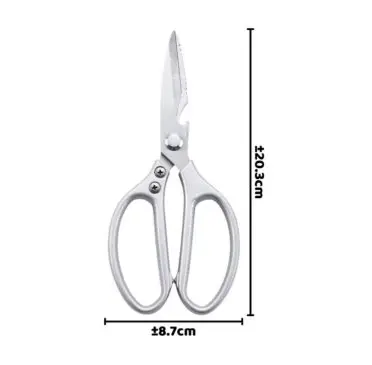 Gunting dapur adalah alat yang penting untuk disediakan saat memasak. Gunting ini terbuat dari bahan stainless steel yang sangat kuat dan kokoh. Dengan desain gerigi pada sisi luar gunting, dan bagian samping untuk membuka tutup botol. Cocok digunakan untuk berbagai hal, seperti membersihkan sisik ikan, membuka tutup botol, memecahkan buah kenari, menggunting atau memotong bahan – bahan makanan seperti sayuran, ayam, daging, ikan, tulang kecil, dll.