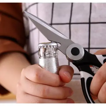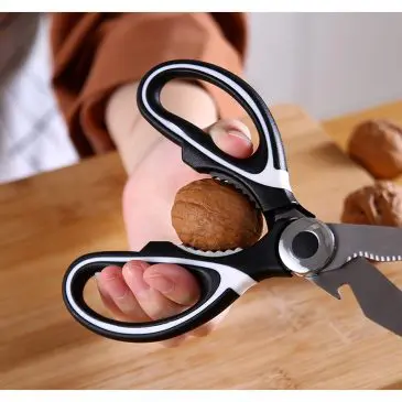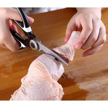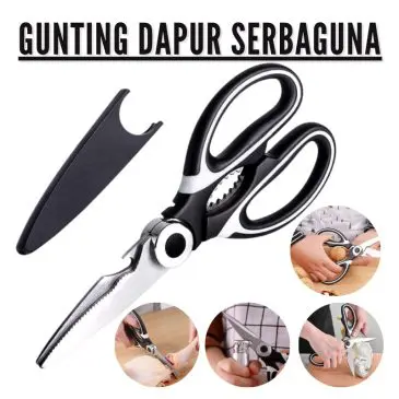 Gunting dapur adalah alat yang penting untuk disediakan saat memasak. Gunting ini terbuat dari bahan stainless steel yang sangat kuat dan kokoh. Dengan desain gerigi pada sisi luar gunting, dan bagian samping untuk membuka tutup botol. Cocok digunakan untuk berbagai hal, seperti membersihkan sisik ikan, membuka tutup botol, memecahkan buah kenari, menggunting atau memotong bahan – bahan makanan seperti sayuran, ayam, daging, ikan, tulang kecil, dll.