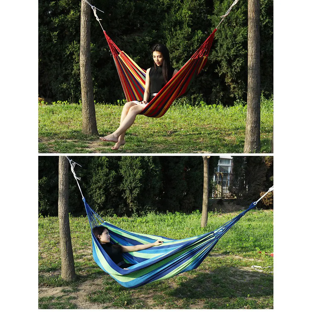 – Kamu tinggal mengikatkan Hammock ini di pohon, tiang, atau penyangga kuat lainnya. Hammock ini juga mudah banget kamu bawa kemana-mana, karena terbuat dari kain yang ringan. Jadi buat kamu yang liburan ke pantai atau ke hutan sekalipun, nggak masalah dengan membawa Hammock ini.