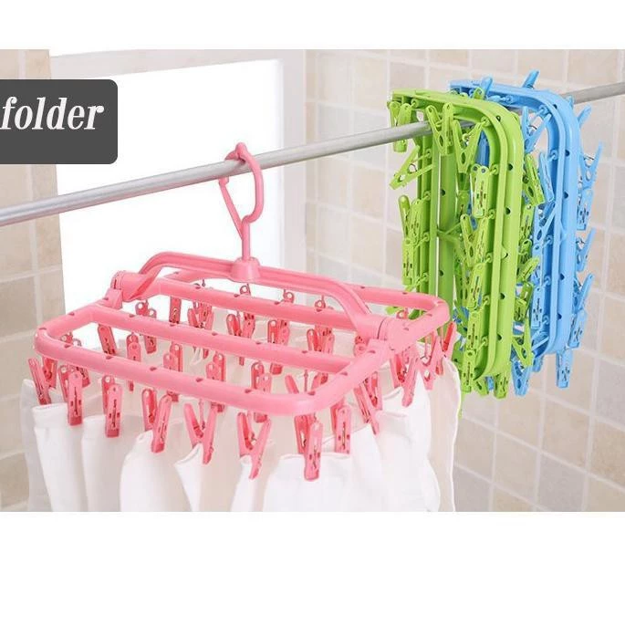 Jemuran Gantung Lipat Jepit Kaos Kaki dan Pakaian Dalam Dengan 16 Anak Jepitan Berputar 360 Derajat