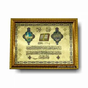 Deskripsi produk Kaligrafi emas ini sangat baik di gunakan sebagai hiasan dinding ruangan. Tampilan kaligrafi emas yang menawan membuat ruangan rumah anda menjadi indah elok dan berkesan islami. Kaligrafi ini di buat dengan bahan dasar hologram emas yang elok , menawan dan tidak akan pudar . Kaligrafi emas ini mampu menumbuhkan energi positif dalam ruangan . Detail Bahan : hologram emas ( menyala ,tahan panas , anti air dan tidak luntur ) . Ukuran : 30cm x 40m Sudah di pasang bingkai fiber : 3cm warna emas . Berat : 400gram