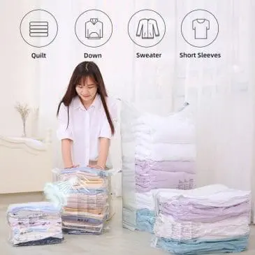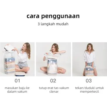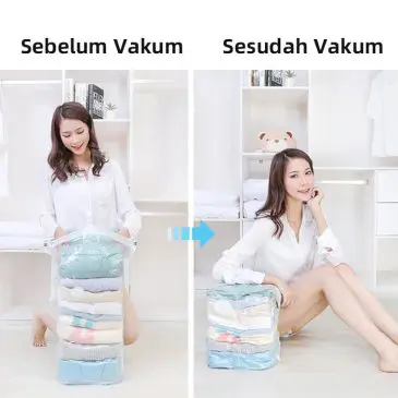 Vacuum bag terbuat dari bahan berkualitas yang tahan lama. Didesain praktis dan bisa dipakai berulang kali. Dapat melindungi pakaian Anda terhadap bau, kotoran, serangga, air tumpah/cairan, dan lain-lain. Menggunakan resleting ganda dan klip penyegel memastikan segel aman untuk kompresi optimal setiap saat.
