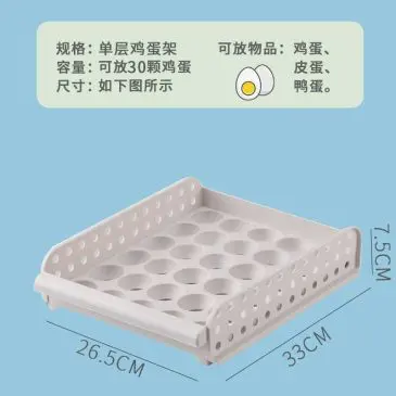 Rak penyimpanan telur ini berbahan plastik tebal yang kokoh dan ringan, tahan lama. Dengan desain lubang disetiap sisi sehingga sirkulasi udara tetap terjaga, anti-lembap sehingga telur tidak cepat rusak. Model yang cantik sehingga penyimpanan telur rapih, teratur, mudah dijangkau.