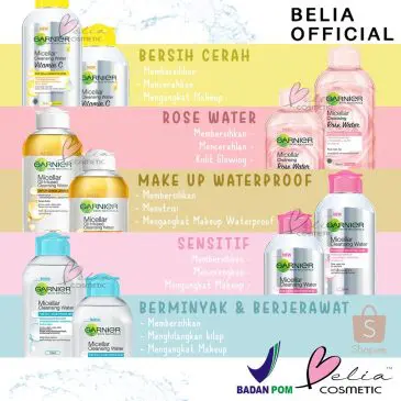 Garnier Micellar Water adalah produk pembersih wajah tanpa bilas. Fungsi utamanya adalah untuk menghapus makeup, membersihkan kotoran, dan sekaligus menyegarkan wajah dalam satu usapan lembut, tanpa perlu dibilas. Cocok untuk semua jenis kulit, termasuk kulit yang cenderung sensitif. Garnier Micellar Water merupakan inovasi pembersih wajah terkini dengan kandungan molekul Micelles yang mampu mengangkat kotoran dan minyak seperti magnet, tanpa perlu dibilas. Tektsturnya ringan seperti air, lembut membersihkan kotoran dan make-up dari wajah, mata, dan bibir tanpa menimbulkan iritasi.