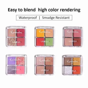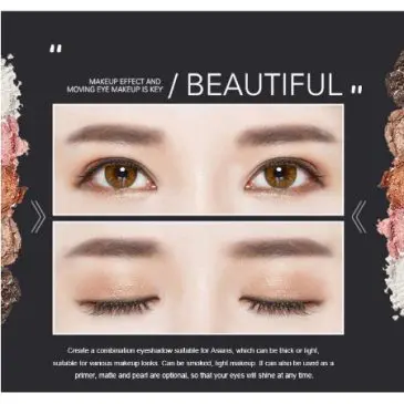 1. Palet eye shadow ini berisi 4 warna eye shadow, memungkinkan Anda dengan mudah membuat berbagai gaya eye shadow, namun tetap mudah di bawa berpergian.