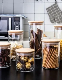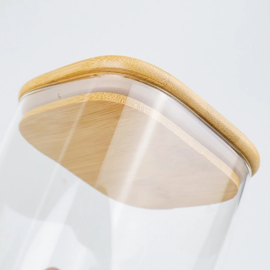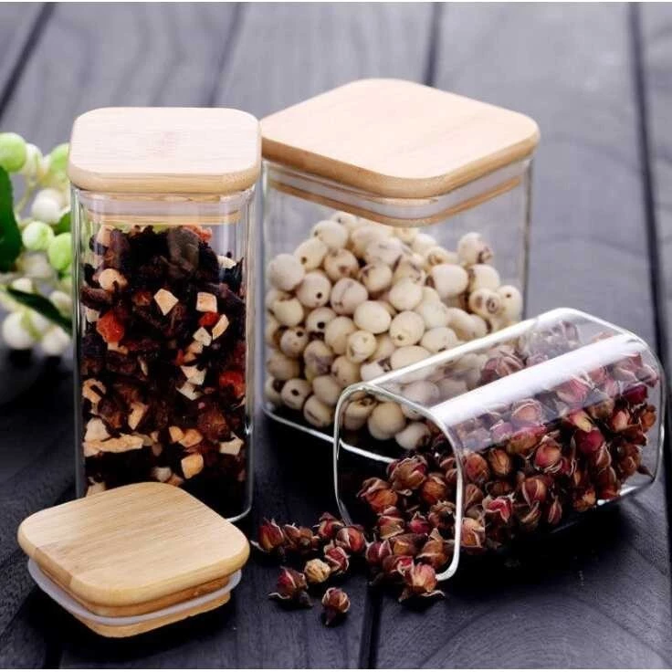Model Kotak Toples Kaca Transparan Dengan Tutup Kayu Kedap Udara Toples Kopi dan Gula 200ml