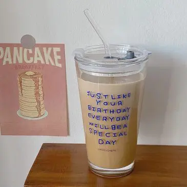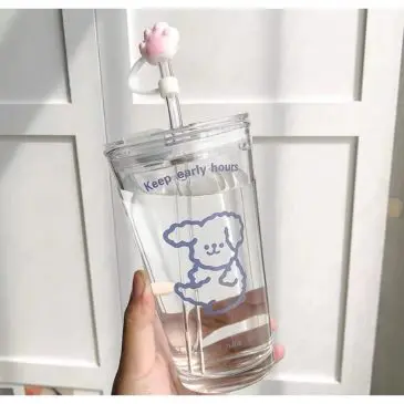 Gelas aesthetic cocok untuk bekal traveling, bahan kaca & beserta sedotan memudahkan anda dalam menggubakan gelas tersebut.