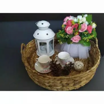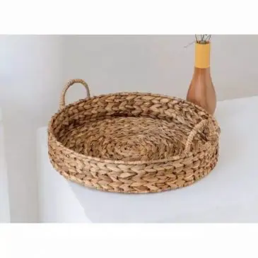 Nampan Bulat Serbaguna Bahan Anyaman Eceng Gondok Dengan 2 Gagang Pegangan
