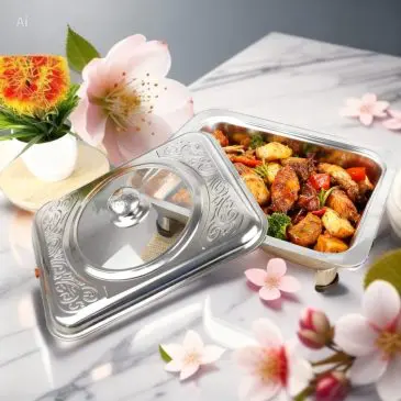 1. 1 set Prasmanan StaiinlessTempat Wadah Saji Makanan Stainless – Fast Food Dish Prasmanan Kotak Tentang Produk ; Prasmanan serba guna ini terbuat dari stainless yang berkualitas serta dilengkapi tutup bercorak kombinasi stainless dengan kaca. Memudahkan melihat isi wadah tanpa membuka tutupnya. Terdapat pula kaki yang bisa dibongkar pasang sesuai dengan kebutuhan. Sangat cocok digunakan untuk acara pesta di rumah