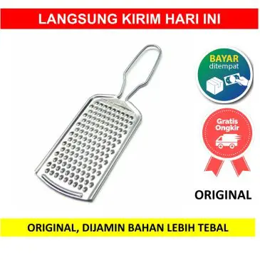 Parutan Keju Serbaguna Bahan stainless, bentuk pipih menghasilkan keju parutan yang kecil-kecil. Spesifikasi : Bahan : Stainless Steel Uk : lebar 5.5cm panjang parutan 10cm panjang sampai gagang 21cm