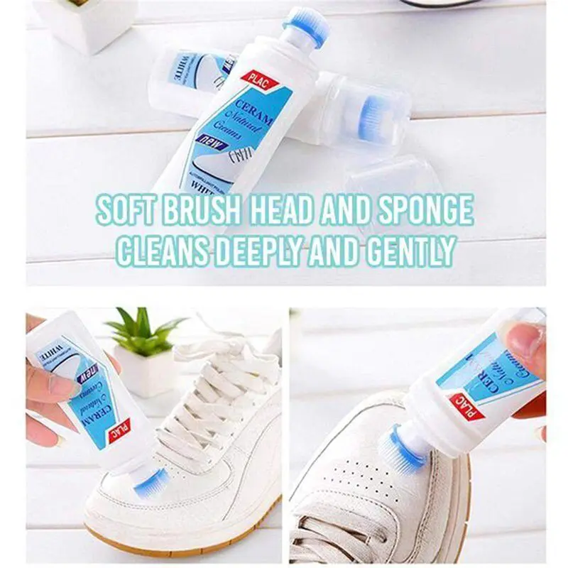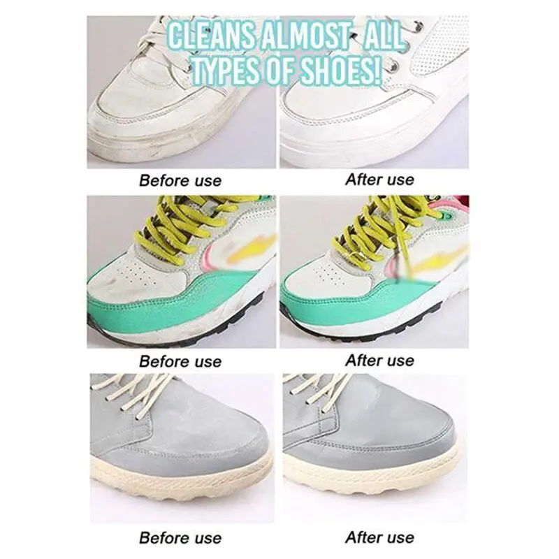 Pembersih sepatu kekinian sangat praktis, efektif, cepat serta mudah digunakan. Cairan ini bisa untuk membersihkan dan memutihkan sepatu yang sudah mulai menguning. Memiliki aroma yang sangat lembut dan sangat aman tidak merusak kulit karena dilengkapi dengan busa dan bulu sikat yang lembut. Cocok untuk menyeka sepatu putih atau tepi sepatu.
