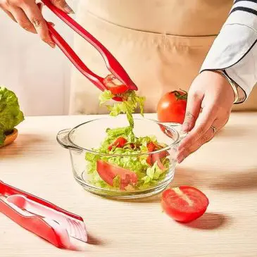 Penjepit makanan seperti salad, steak, daging barbekyu, kentang goreng, roti dari pemanggangan, dan lainnya. Terbuat dari bahan plastik tebal, penjepit ini tahan karat, dan tahan lama.