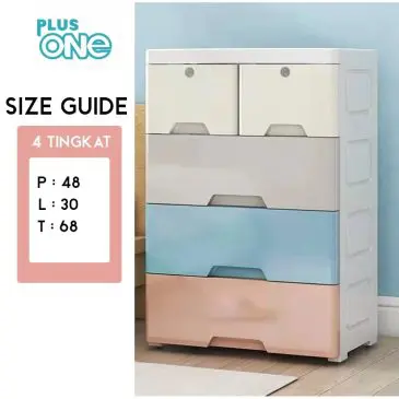 Plus One Lemari Pakaian Anak Bahan Plastik 4 Susun Model Laci Dengan 2 Pintu + Kunci