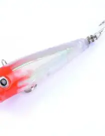 Deskripsi produk Popper Fishing Lures Topwater Jerkbait Swimbait Catfish Poppers Fake/Hard/Artificial Bait Wobblers For Trolling/Pike/Fish Sea Feature: Type: Hard Bait Weight:6.8g/0.24oz Length: 6.5cm/2.56in Diving Depth:topwater Quality hooks: 2x Strong Treble Hooks Ring: Strong Flat Ring Target Fish: Pale chub,bass,Pikes,Yellowcheck carp,Chinese perch,Topmouth culter