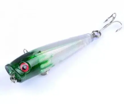 Deskripsi produk Popper Fishing Lures Topwater Jerkbait Swimbait Catfish Poppers Fake/Hard/Artificial Bait Wobblers For Trolling/Pike/Fish Sea Feature: Type: Hard Bait Weight:6.8g/0.24oz Length: 6.5cm/2.56in Diving Depth:topwater Quality hooks: 2x Strong Treble Hooks Ring: Strong Flat Ring Target Fish: Pale chub,bass,Pikes,Yellowcheck carp,Chinese perch,Topmouth culter