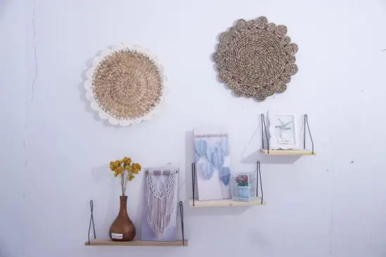 rak dinding tempel floating shelf kayu besi wall grid tanaman hias serbaguna