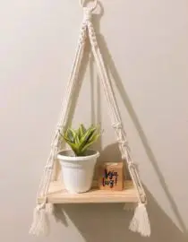 Macrame ambalan untuk dekorasi rumah. Cocok untuk rak buku atau tempat hiasan-hiasan kecil.