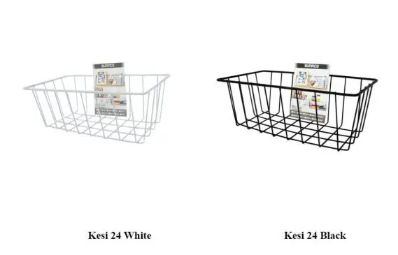 MODEL : KESI 24 white (Keranjang Besi ukuran 24 x 12 cm sudah dengan 2 paku klem dan 2 kabel ties)
