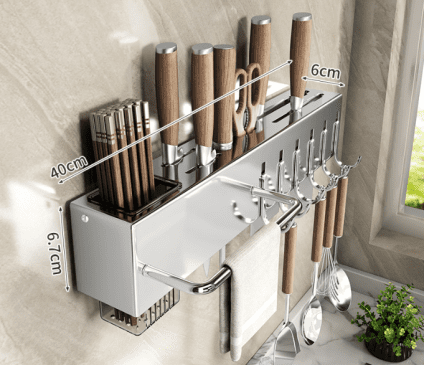 40CM: 40cm * 6cm * 6cm (termasuk 6 kait + handuk bar +Tempat sumpit*1pc)