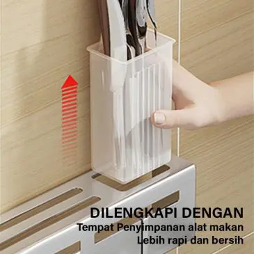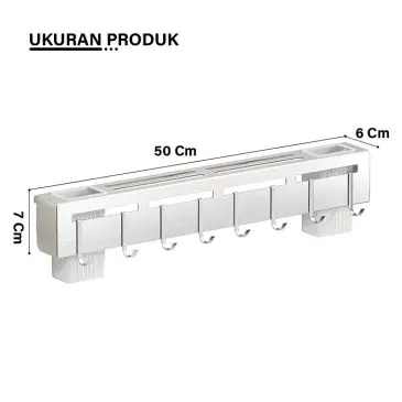 Rak dinding dapur bahan aluminium dengan kualitas terbaik, anti-karat dan tahan lama. Tidak perlu khawatir lagi tentang penempatan peralatan dapur yang berantakan. Anda dapat menata berbagai jenis pisau pada rak bagian. Rak ini juga dilengkapi dengan banyak hok atau gantungan untuk menggantung spatula, peniris, atau alat dapur lainnya. Penempatan dengan cara ditempel pada dinding sehingga menghemat ruang dan membuat dapur Anda lebih terorganisir dan rapih.