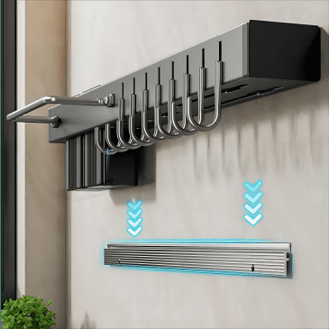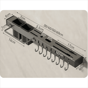 Rak dinding dapur bahan aluminium dengan kualitas terbaik, anti-karat dan tahan lama. Tidak perlu khawatir lagi tentang penempatan peralatan dapur yang berantakan. Anda dapat menata berbagai jenis pisau pada rak bagian. Rak ini juga dilengkapi dengan banyak hok atau gantungan untuk menggantung spatula, peniris, atau alat dapur lainnya. Penempatan dengan cara ditempel pada dinding sehingga menghemat ruang dan membuat dapur Anda lebih terorganisir dan rapih.